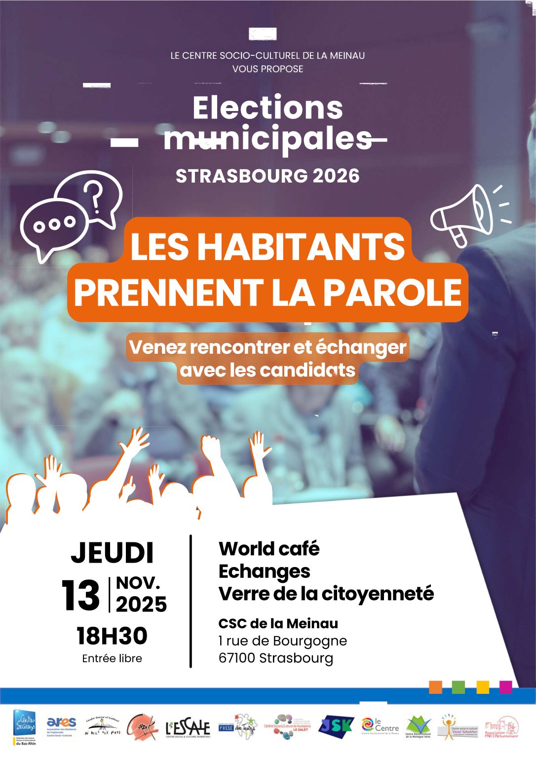 Le Centre socioculturel de la Meinau vous propose une soirée d’échanges et de débats dans le cadre des élections municipales à venir